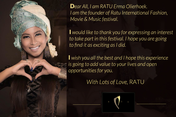 The first ever Ratu International festival will be launched in October this year in Douala, Cameroon. The festival is aimed at showcasing Cameroon fashion, movies and music. The woman behind the festival Miss Ratu Erma Olierhoek created the festival with the main goal to create opportunities for networking and to reach beyond Cameroon. The festival has attracted both international and national interest and the organizers hope to leave a lasting impression and more importantly they hope to make a difference.