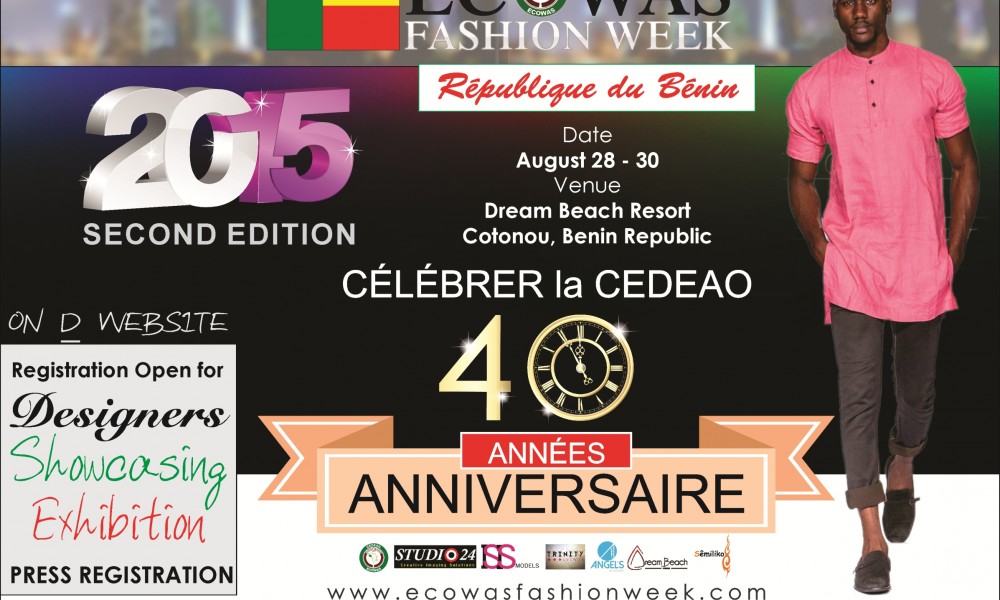 The Economic Community of West African States marks its 40th Anniversary with a fashion Week in Cotonou, Republic of Benin that is to take place from 28 August to 30 August 2015. Ecowas Fashion Week currently in its second edition is recording successes already on the building “fame board”. The organizers of EFW are mostly interested in building, expanding and encouraging fashion, and a common market hub amongst the West African States. ECOWAS-governed region is comprised of fifteen (15) countries: Benin, Burkina Faso, Cape Verde, Cote d’Ivoire, Gambia, Ghana, Guinea, Guinea-Bissau, Liberia, Mali, Niger, Nigeria, Senegal, Sierra Leone and Togo.