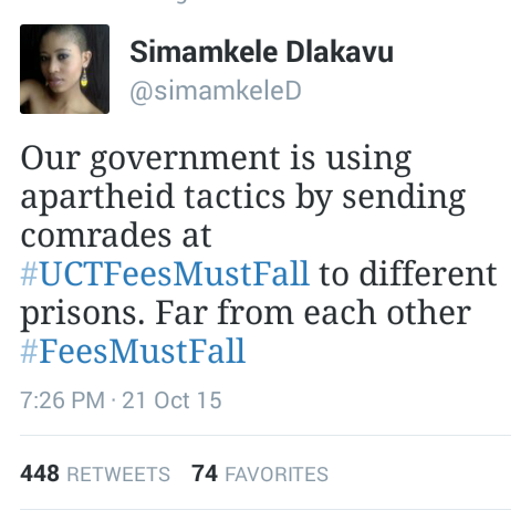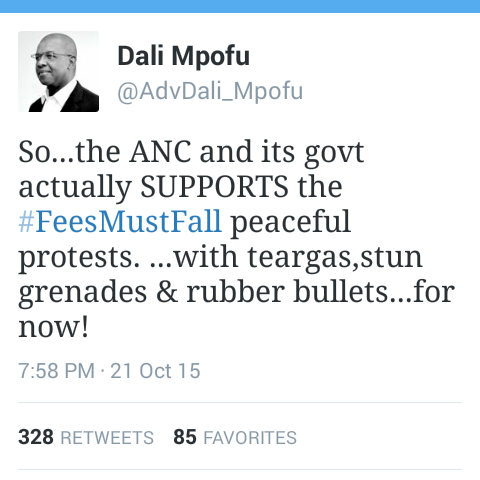 21 October 2015 was a very historic day all across South Africa with University of Cape Town students marching to Parliament where they were fired at by The South African Police Service. I and most of South Africa and Africa for that matter stand with the students
