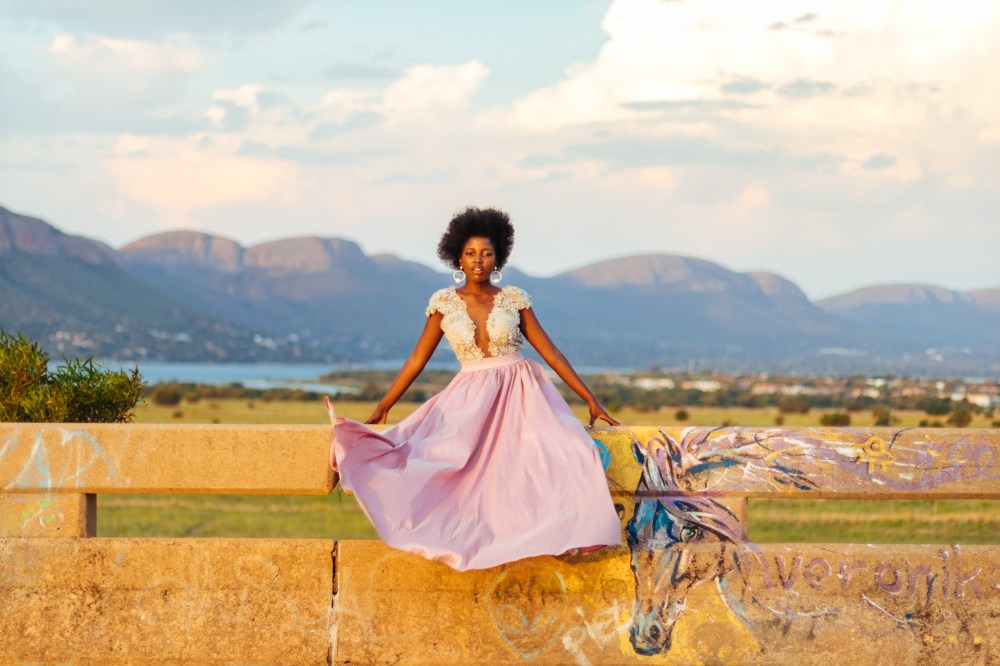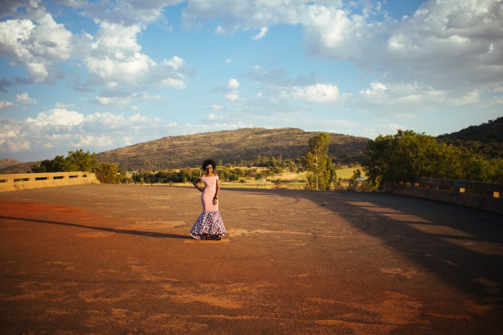 Being on that short abandoned bridge wearing beautiful dresses and having one of South Africa’s best dams as a backdrop was so much fun and made me feel like I was one with the nature around me. The photo shoot was simply a fun activity to do while we chased the sunset for the perfect light while getting dope shots. I found that the graffiti on the wall added some character to my pose as I became friends with my inanimate purple horse.