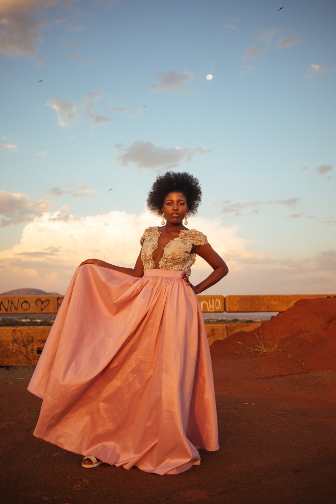 Working with Lebogang Ditibane means that we get to shoot in the coolest of places because Lebogang is such well traveled photographer who has a 6th sense when it comes to spotting the best locations for photoshoots. Heading to Hartbeespoort Town at an abandoned bridge for a mini Ever Design photo shoot was one of the best ways to spend my December. The abandoned bridge overlooks the famous and breathtaking Hartbeespoort Dam and the mountain standing as a perfect backdrop for the shoot. Because dressing up is so fun I wore formal dresses by Everson Matewere a talented Malawian fashion designer who is based in Johannesburg. He makes beautiful dresses for all sorts of formal events.
